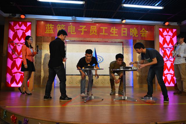 ????????晚會上準備了“水中吹球”、“快樂傳真”、“誰是臥底”、“聽曲識歌”等游戲,以及小品“西游記外傳”、歌曲串燒等節目。公司工會也為壽星們準備了現金抽獎紅包、生日蛋糕及精美的生日小禮物。